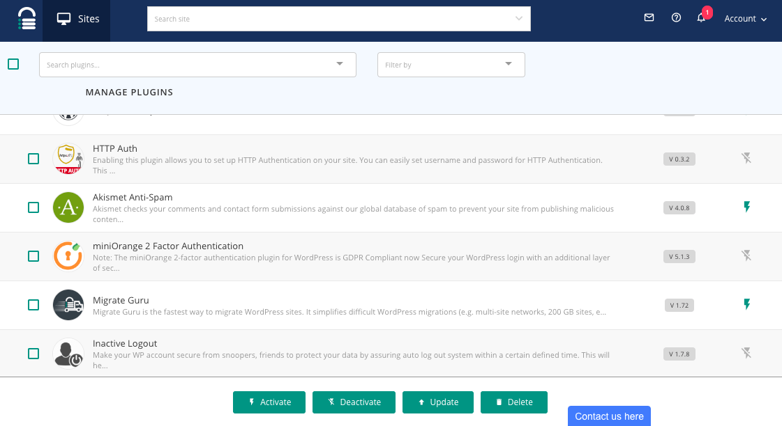 The MalCare dashboard has handy tools to update or easily delete themes and plugins.