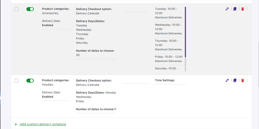 In one of the issues, common settings for category based delivery schedules were not being applied on checkout.
